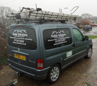 This is the modern method for cleaning windows. Using a Reach & Wash Extending Waterfed Brush the windows can be cleaned at almost any height safely from the ground thus eliminating the need for ladders. Pure water is specially treated Deionised Water that will attract the dirt away from your windows and leave them streak free.